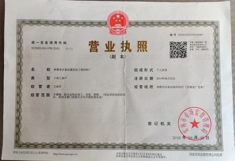 發證機構:   常熟市市場監督管理局 發證時間 :   2014-06-23