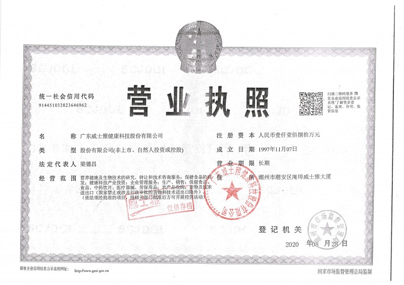 發證機構:   潮州市市場監督管理局 發證時間 :   1997-11-07