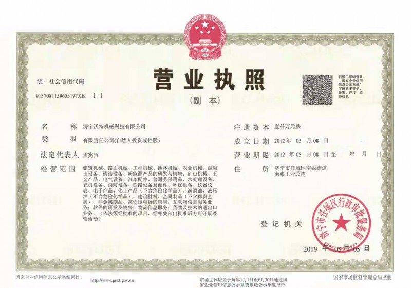 營業執照,濟寧沃 特機械科技有限公司