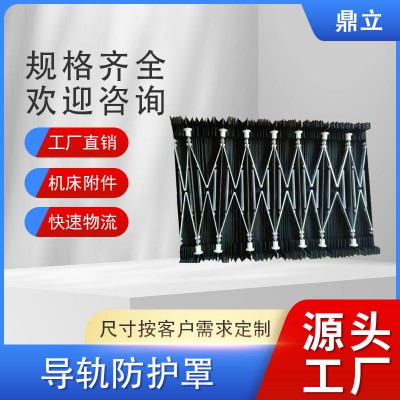 特點:1. 此類護罩具有不怕腳踩、硬物沖撞不變形、壽命長、密封好和運行輕便等特點。2. 該產品使用專用的材料,耐冷卻劑,防油、鐵屑。3. 護罩具行程長和壓縮小的特點。