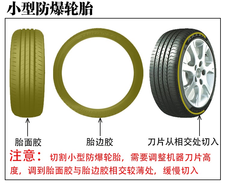 輪胎切割機用途:一.用途:把廢舊輪胎的胎側和胎冠進行切割分離,以便下一步的分割,是處理廢舊輪胎的頭道工序。二.詳細說明:將廢舊輪胎置于園盤平臺之上,旋轉中間手輪,四爪卡架就會牢固的卡住輪胎的內圈,啟動電源,工作平臺旋轉,切割刀具根據需要進刀,緩慢切入輪胎,循序漸進,直至將輪胎側面切下。刀具采用硬質合金,堅硬耐用,可反復修磨使用。