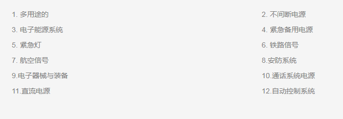 2. 適用于備用和儲(chǔ)能電源使用。