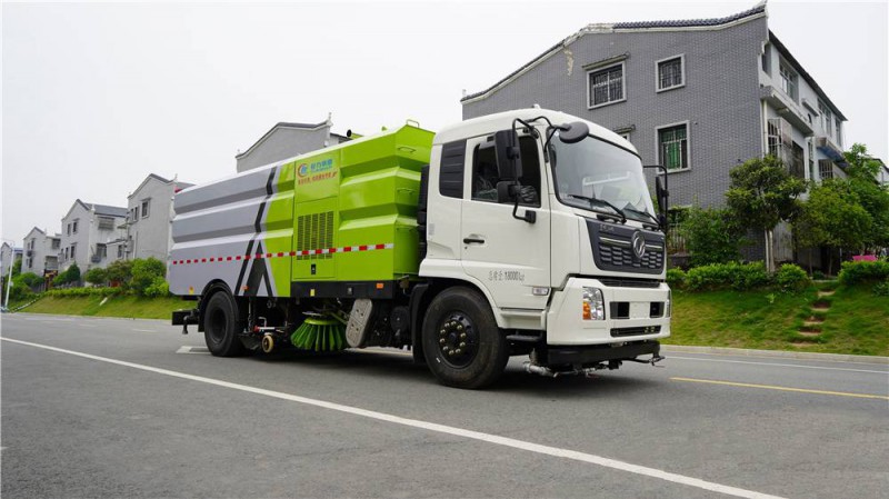 1)該車集掃路車、灑水車和高壓清洗車功能于一體,具備路面清掃、路面洗刷、高壓清洗、低壓沖洗、路緣石洗刷、垃圾收集、污水回收、噴霧降塵和道路隔離墻清洗、小廣告清洗等多種作業(yè)功能。