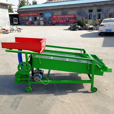該精選篩為二層篩網(wǎng),先經(jīng)過進(jìn)料口處風(fēng)機(jī)抽風(fēng),直接抽走重量輕的雜葉或麥秸稈,上層篩的初次篩分再把大雜清理過,好的糧食(種子)直接落到下層篩網(wǎng)上,下層篩網(wǎng)會把糧食(種子)中的小雜.小石子.有缺陷的糧食(種子)直接漏掉,完好的糧食(種子)會從出料口篩分出來。該小型清糧機(jī)解決了揚(yáng)場機(jī)的功能單一,不能有效去除石子.土塊的缺陷,更能為清理.凈選糧食(種子)帶來滿意的效果。該機(jī)有占地小,移動方便,便以維修,除塵除雜效率明顯,能耗低,使用簡便等優(yōu)點(diǎn)。