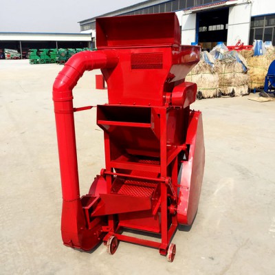 花生脫殼機(jī)有機(jī)架、風(fēng)扇、轉(zhuǎn)子、單相電機(jī)、篩網(wǎng)(有大小兩種)、入料斗、震動(dòng)篩、三角帶輪及其傳動(dòng)三角帶等組成。機(jī)具正常運(yùn)轉(zhuǎn)后,將花生定量、均勻、連續(xù)地投入進(jìn)料斗,花生在轉(zhuǎn)子的反復(fù)打擊、摩擦、碰撞作用下,花生殼破碎。花生粒及破碎的花生殼在轉(zhuǎn)子的旋轉(zhuǎn)風(fēng)壓及打擊下,通過(guò)一定孔徑的篩網(wǎng)(花生次脫粒用大孔篩網(wǎng),清選后的小皮果更換成小孔篩網(wǎng)進(jìn)行第二次脫殼),這時(shí),花生殼、粒受到旋轉(zhuǎn)風(fēng)扇的吹力作用,重量輕的花生殼被吹出機(jī)體外,花生粒通過(guò)震動(dòng)篩的篩選達(dá)到清選的目的。