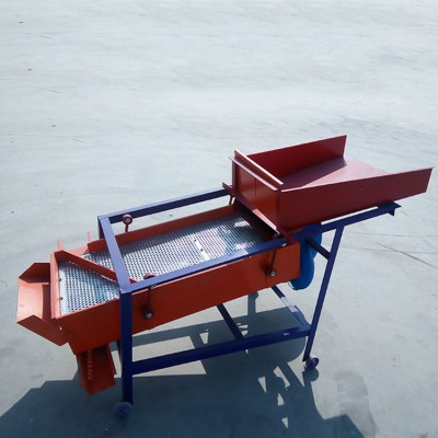 該精選篩為二層篩網(wǎng),先經(jīng)過進料口處風機抽風,直接抽走重量輕的雜葉或麥秸稈,上層篩的初次篩分再把大雜清理過,好的糧食(種子)直接落到下層篩網(wǎng)上,下層篩網(wǎng)會把糧食(種子)中的小雜.小石子.有缺陷的糧食(種子)直接漏掉,完好的糧食(種子)會從出料口篩分出來。該小型清糧機解決了揚場機的功能單一,不能有效去除石子.土塊的缺陷,更能為清理.凈選糧食(種子)帶來滿意的效果。該機有占地小,移動方便,便以維修,除塵除雜效率明顯,能耗低,使用簡便等優(yōu)點。