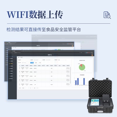 9.6、數(shù)據(jù)監(jiān)管系統(tǒng):同步對接監(jiān)管平臺,數(shù)據(jù)可局域網(wǎng)和互聯(lián)網(wǎng)數(shù)據(jù)上傳,檢測結(jié)果可直接傳至食品安全監(jiān)管平臺。進行區(qū)域食品安全監(jiān)管及大數(shù)據(jù)分析處理與數(shù)據(jù)統(tǒng)計,監(jiān)測區(qū)域食品安全長短期動態(tài)及問題預(yù)估、預(yù)警。