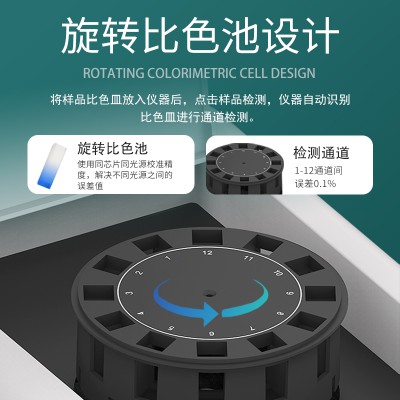 ★檢測通道:≥12通道;采用精密旋轉比色池設計,使用同芯片同光源校準精度,解決不同光源之間的誤差值。1-12通道間誤差0.1%。