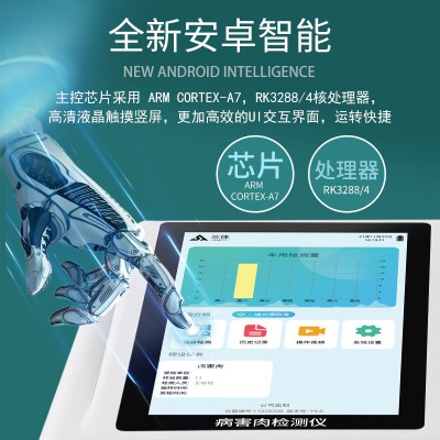 3)儀器采用全新安卓智能系統,主控芯片采用 ARM Cortex-A7,RK3288/4核處理器,10.1寸高清液晶觸摸豎屏,更加高效的UI交互界面,運轉快捷;儀器配備無線通信模塊: 4G(APN)通訊模塊、Wifi模塊,藍牙傳輸,同時具有雙USB接口以及RJ45接口能以多種方式實現數據保存和數據傳輸功能。