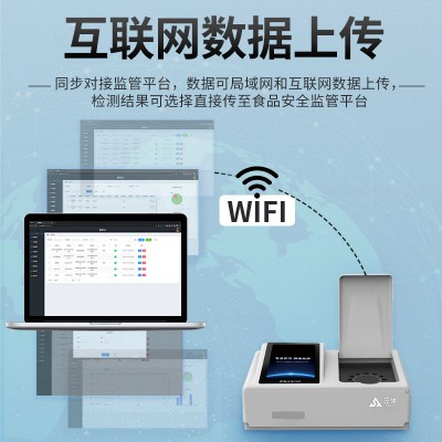 9.6、數據監管系統:同步對接監管平臺,數據可局域網和互聯網數據上傳,檢測結果可選擇直接傳至食品安全監管平臺。進行區域食品安全監管及大數據分析處理與數據統計,檢測區域食品安全長短期動態,達到食品安全問題預估、預警。