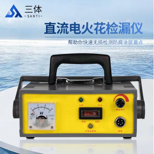 直流電火花檢漏儀器是通過對各導電基體防腐層表面加一定量的脈沖高壓,如因防腐層過薄,漏金屬或有漏氣針孔,當脈沖電高壓經過時,就形成隙擊穿而產生電火花放電,同時給報警電路送去一脈沖信號,使報警器發出聲響報警,從而達到對防腐層檢測之目的。應用廣泛于3PE防腐鋼管、玻璃鱗片防腐、搪玻璃反應罐。玻璃鋼防腐、瀝青防腐管道、橡膠襯里檢測、RPC冷纏帶防腐、聚乙烯膠帶防腐、聚脈防腐等行業