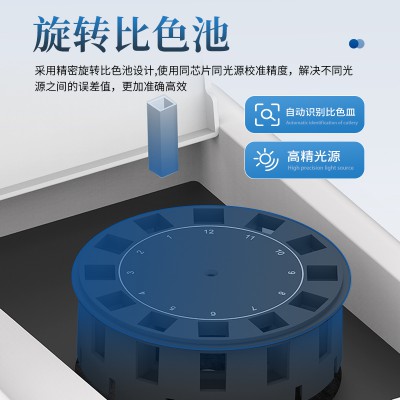 4、檢測通道:≥12通道;采用精密旋轉比色池設計,使用同芯片同光源校準精度,解決不同光源之間的誤差值,更加準確高效。