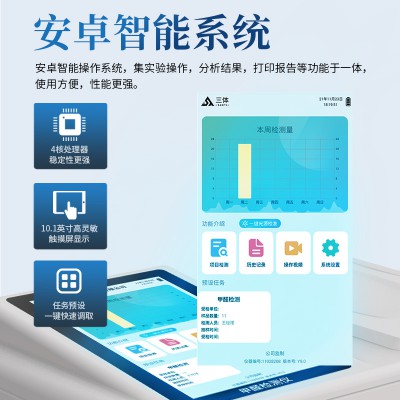 3、顯示屏幕:儀器采用10.1英寸豎向液晶觸摸屏顯,搭配運行安卓智能操作系統,主控芯片采用ARM Cortex-A7,RK3288/4核處理器,主頻1.88Ghz,操作方便,性能更強。