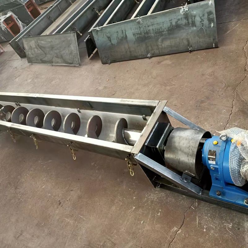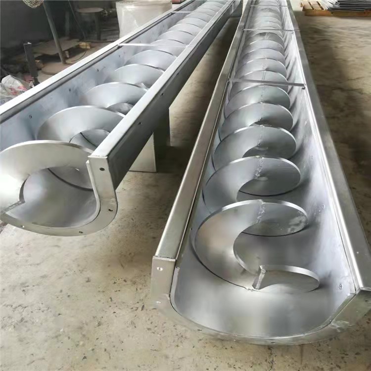WLS系列無軸螺旋輸送機為封閉式,無軸螺旋為較厚的帶葉片,通過驅動,可保證輸送物料流暢。殼體內襯工業塑料、螺旋葉片、殼體底部襯板滑動接觸,其機殼為U型管或圓管,可水平或傾斜輸送,輸送長度、安裝角度可根據用戶要求設計運行方式,物料通過進料口進入輸送機殼體內,在螺旋葉片的推動下,沿螺旋推進方向推動,由出料口排出,可直接輸送至所需部位。