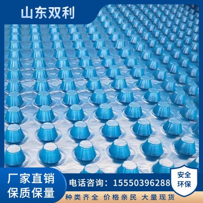 排水板采用新環(huán)保應用成果由聚丙乙烯(PP)改性注塑而成,在土層以下為長期耐老化不分解物質(zhì),使用年限超