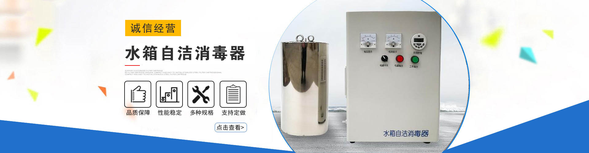主要研制生產紫外線消毒器,水箱自潔消毒器(內置式,外置式),臭氧發生器(空氣源,氧氣源)紫外線消毒器(手動清洗,自動清洗)中壓紫外線消毒器,明渠式紫外線消毒模塊。