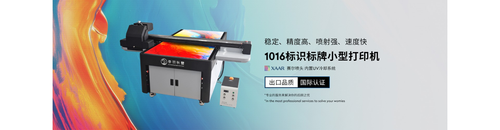 廣州春羽秋豐數碼彩印設備有限公司,是國內數碼行業及數碼彩印行業中首家雙白浮雕高速打印推行者,首家光油打方案推行廠家,20MM高落差打印方案的先行推行者。公司以行業需求為根本,匯集行業內最頂尖的人才和技術資源,專注于工業級數碼打印設備的研發與制造,目前生產的工業UV彩印機選用日本理光G5,G6噴頭、柯尼卡噴頭,英國賽爾噴頭,結合公司多年的運用經驗,不斷的更新和不停止的創新,為工業制造型企業及個體創業者提供了更為靠普更為的UV打印機設備與完整的uv打印應用方案。