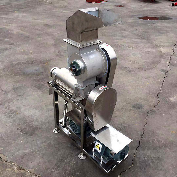 原料加入進(jìn)料斗中,在螺旋的推進(jìn)下受壓,其壓榨的汁液通過過濾網(wǎng)流入底部的盛汁器,而廢