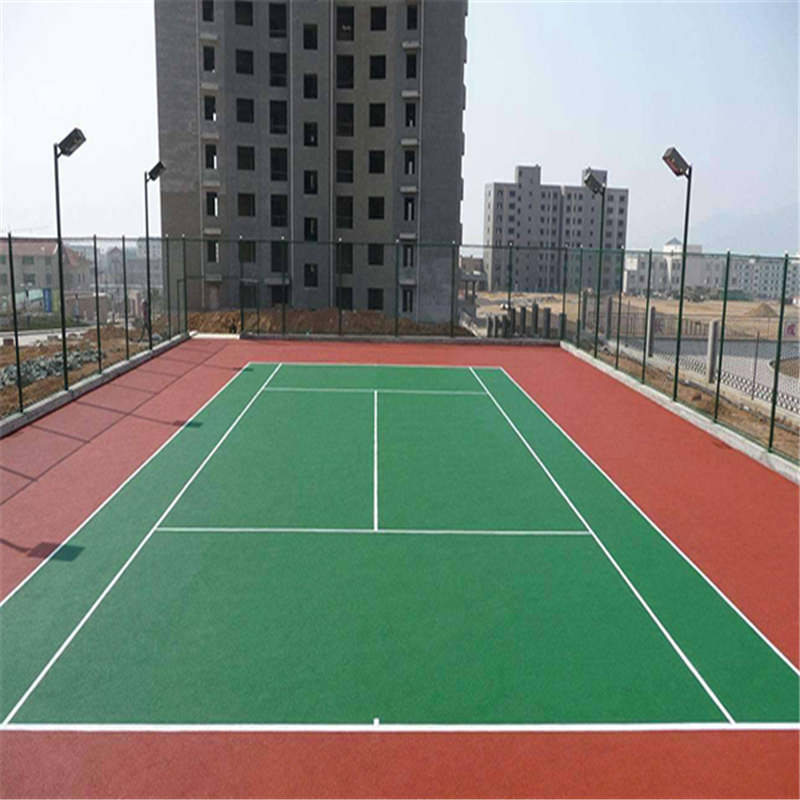 3、實用性能:該材料色澤美觀、耐磨、防滑、耐老化,不受氣候條件的影響,是全天候的球場材料,并能在瀝青混凝土基礎或水泥混凝土基礎面上施工,施工簡易,維護方便。