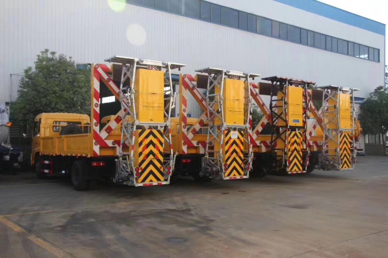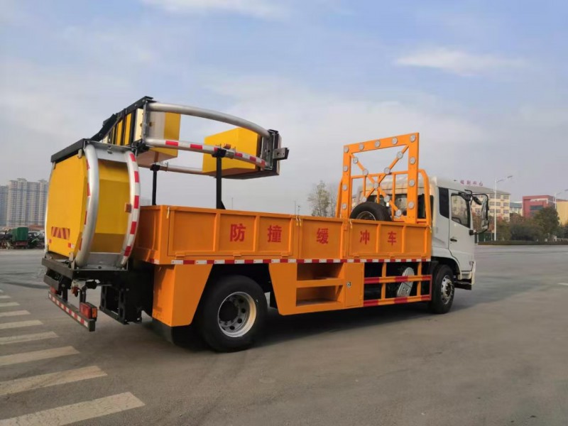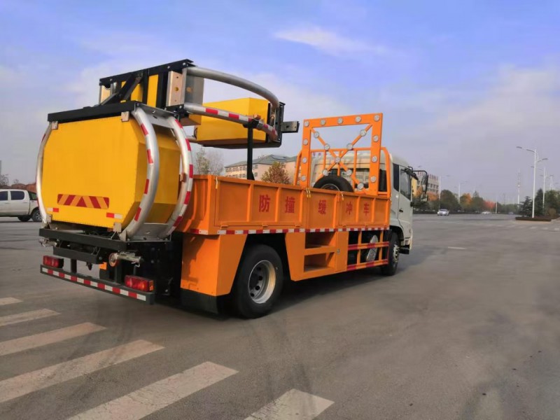 上裝配置:護箱:采用Q235國標邊3mm底板花紋板4mm厚,箱體后部防撞緩沖模塊包采用國產乾行達公司技術產品100K防撞緩沖模塊,防撞緩沖吸能模塊主要由車載防撞緩沖墊和導向標志架組成,充當施工作業車輛后方的緩沖衛士。如若發生追尾事故,能夠在肇事車輛和前方施工作業區域之間構建一個緩沖區域,通過機具結構變形吸收撞擊的能量,最大限度地降低被保護人員及設備遭到碰撞的幾率。高性能液壓系統,可實現快速舉升和落下操作,方便設備運輸轉場,一鍵啟動功能,舉升和落下防撞裝置,當防撞裝置未完全落下到工作位置或舉升到垂直運輸位置時,會有自動警告音提示。