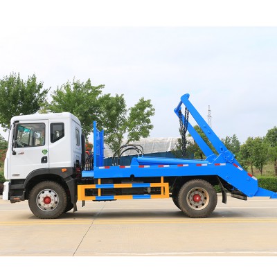 擺臂式垃圾車適用全國通用垃圾斗,分別有地面斗和地坑斗,液壓操作,垃圾斗可自吊上吊下,擺臂一次工作循環時間:60S。該車的特點是貨斗與車體分開,能實現一臺車與多個貨斗聯合作業,循環運輸,充分提高了車輛的運輸能力,特別適用于短途運輸,如環衛部門對城鎮垃圾的清理、運輸等。