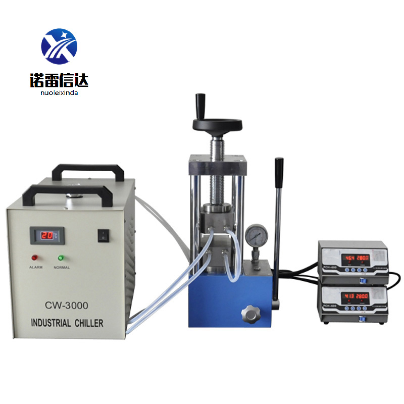 將溫控器的加熱溫度設(shè)定為0停止加熱。打開冷水機(jī)對加熱板進(jìn)行快速降溫將設(shè)備降到室溫。最后將壓片機(jī)泄壓取出樣品。