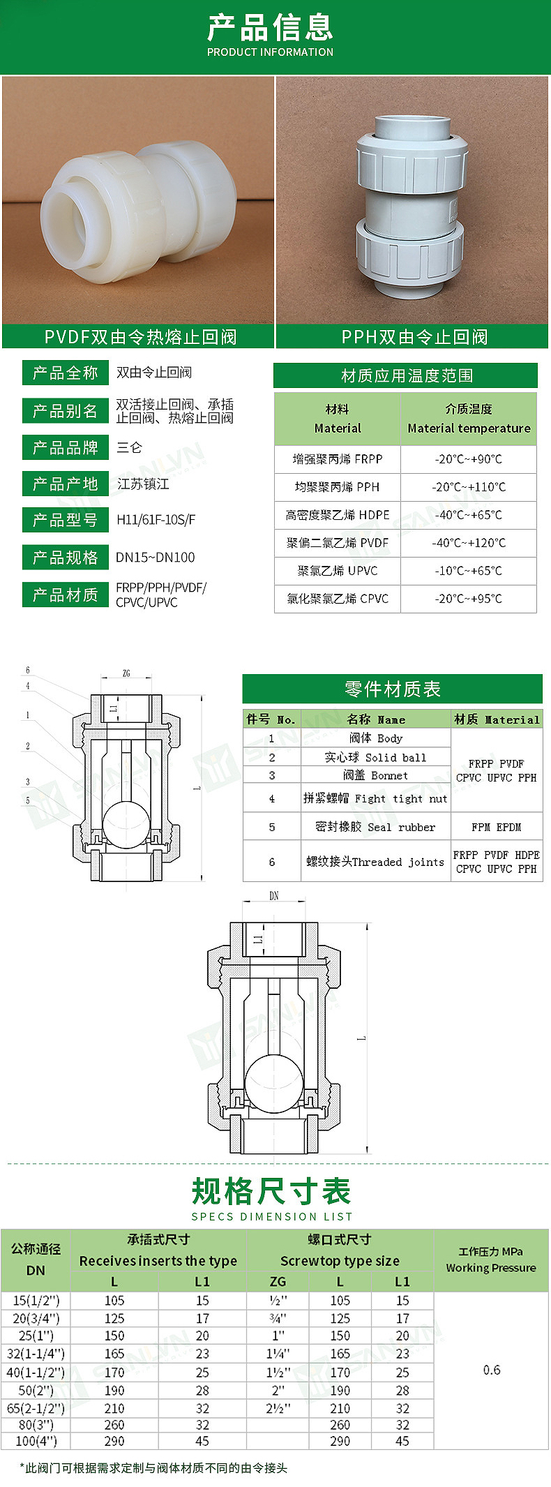 PVDF雙由令熱熔止回閥 球芯止回閥 三侖防腐