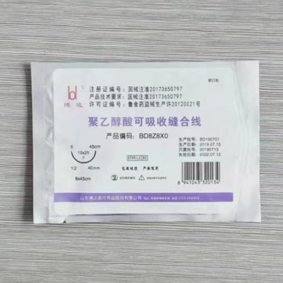 聚乙醇酸可吸收縫合線,產品具有水解吸收,組織反應低,打結方便牢固的特點;線體質軟拉力強勁,良好的組織相容性,縫合針采用進口馬尼針組織穿透力好,針線鏈接處沒有毛刺扁平的現象,為組織縫合減少損傷為患者提供安全保證。