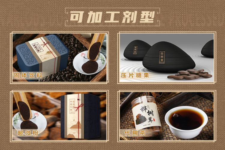 我廠采用俄羅斯西伯利亞白樺茸為原料,生產資質齊全,片劑粉劑均可代工,加工規格可根據需求定制。