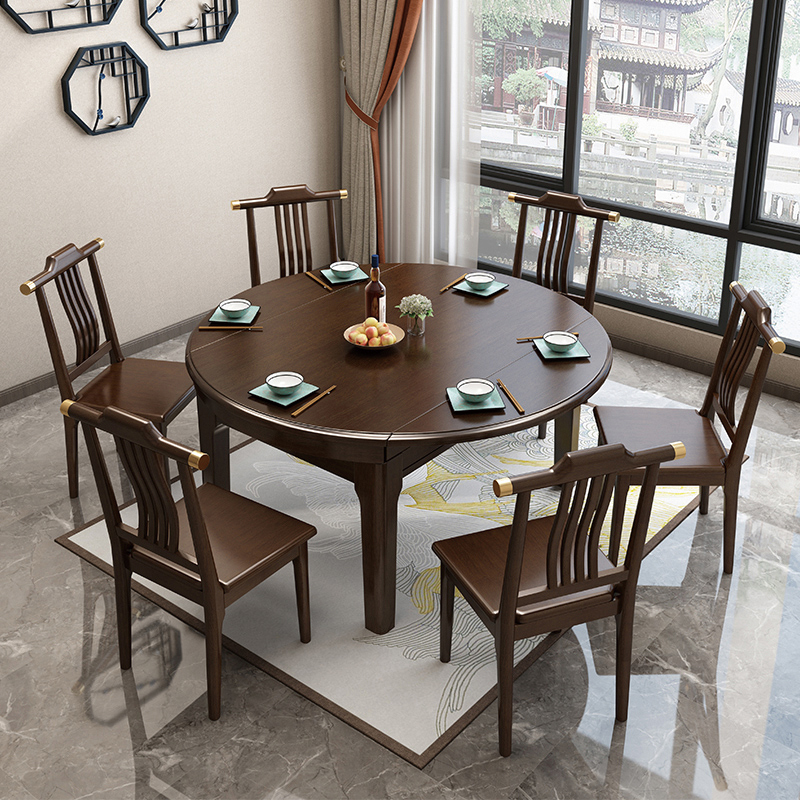 實木餐桌 工藝巖板餐桌 實木餐桌圓桌 寬敞圓餐桌