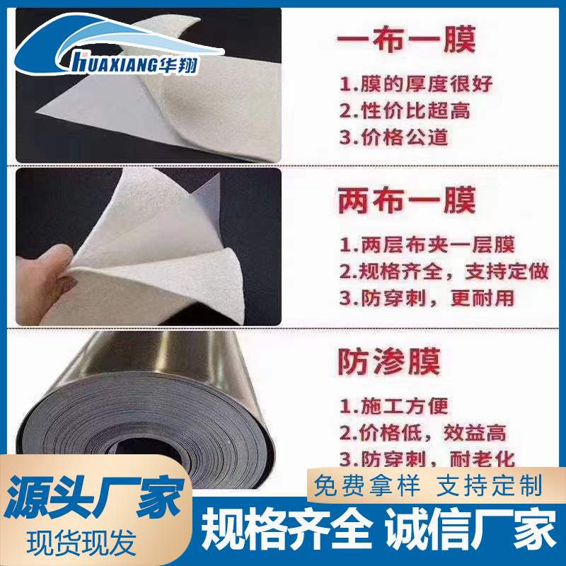 短絲復合土工膜是用短絲土工布與土工膜復合而成的不透水材料,它主要用于防滲,復合土工膜分為一布一膜和兩布一膜、寬幅4-6m,重量為200-1500g/m2,抗拉、抗撕裂、頂破等物理力學性能指標高,能滿足水利、市政、建筑、交通、地鐵、隧道等土木工程需要。由于其選用高分子材料且生產工藝中添加了防老化劑,故可在非常規溫度環境中使用。
