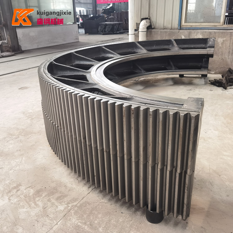 球磨機大型齒輪材料的選擇:邊緣傳動球磨機大小齒輪的破壞,主要是由于齒面的磨損及彎曲折斷。因此,要求齒輪材質具有足夠的強度、較高的耐磨性和良好的加工性。目前球磨機大齒圈的材料一般采用ZG310-570, ZG42CrMo,但在加工前須經正火處理,硬度為HB170~200。小齒輪采用35SiMn、45MnB、40Cr等材料,經過調質處理,其硬度必須高于球磨機大齒輪可達HB220~250。