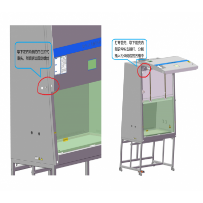 紫外燈管位于操作區后上部,保證紫外光可以充分照射到操作區內所有空間充分消毒