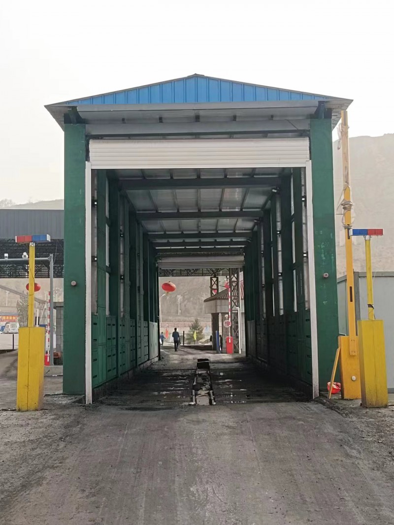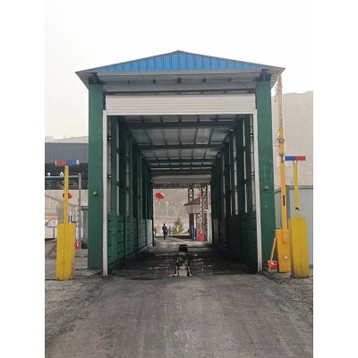智能洗車機設備服務于廠區出口運輸車輛車輪、車身、底盤的清洗,設備尺寸主要由3組高壓中水沖洗設施+1組抖水風干系統+1套自動啟停電器控制系統(可實現手動/自動操作切換)1套沖洗管路系統組成,該設備承重底板采用預埋結構設計,所有通水管路全部采用熱鍍鋅材質(耐腐蝕性更強),提高設備使用壽命,同時配用大功率高揚程的高壓泵,經過專用304不銹鋼材質噴嘴,能夠把輪胎、底盤、兩側車身上泥沙粉塵沖洗干凈;全封閉龍門設計,沖洗時洗車設備兩側的擋水墻能夠有效阻止沖洗水飛濺流失,污染洗車機周圍道路,防止產生二次揚塵。同時兩側擋水墻設有采光區,能夠保證洗車臺隧道內司機人員的有效采光。