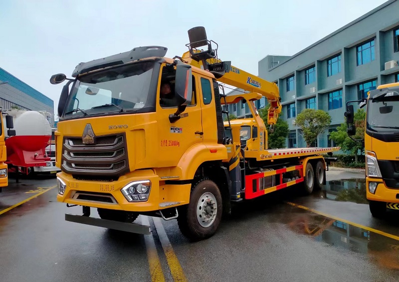 重汽豪沃后八輪平板帶吊清障車 12噸隨車吊清障車
