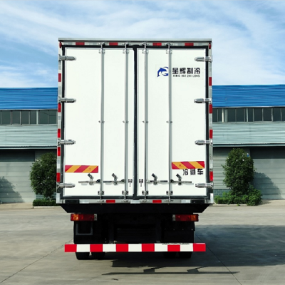 (1):冷藏車采用鋼木結構,斷橋隔熱技術,鍍鋅管骨架,內外選用優質玻璃鋼(不吸光、隔熱性好、硬度強、抗氧化),中間填充8個厚XPS擠塑聚笨板;高強度粘合劑、正壓機熱壓成型(采用全自動打膠壓板機,打膠+壓板一氣呵成,打膠均勻,不易鼓包,出板迅速高效)。