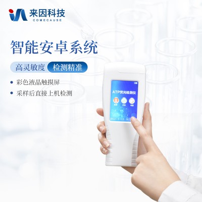 該設備為全新升級產品,安卓智能操作系統。操作采用生物化學反應方法檢測ATP含量,ATP熒光檢測儀基于螢火蟲發光原理,利用“熒光素酶—熒光素體系”快速檢測三lín suān腺苷(ATP)。ATP拭子含有可以裂解細胞膜的試劑,能將細胞內ATP釋放出來,與試劑中含有的特異性酶發生反應,產生光,再用熒光照度計檢測發光值,微生物的數量與發光值成正比,由于所有生物活細胞中含有恒量的ATP,所以ATP含量可以清晰地表明樣品中微生物與其他生物殘余的多少,用于判斷衛生狀況。
