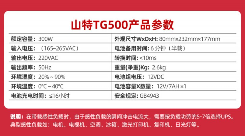 山特TG500 UPS電源220V辦公家用電腦應急備用蓄電池