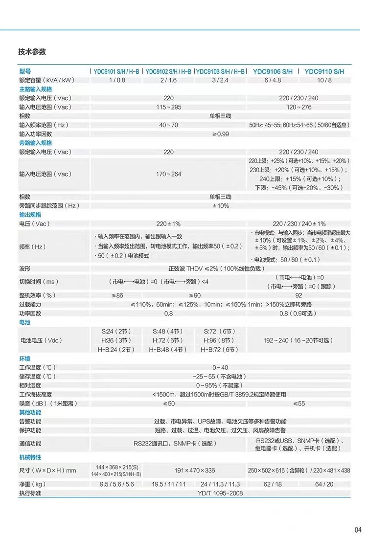 5. 科·士達(dá)UPS不間斷電源YDC9106H在線式 單進(jìn)單出高頻
