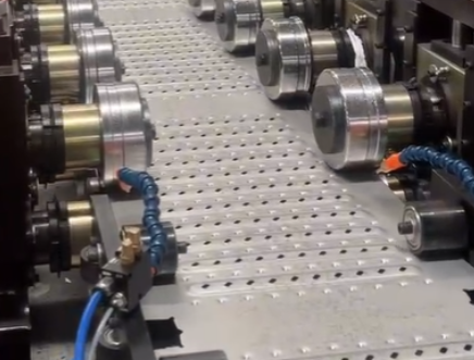 主要由:自動放料機—校平—送料部分—連續沖孔部分—成型部分—定尺切斷部分—自動折彎—收料臺、電氣控制柜等部件組成 。