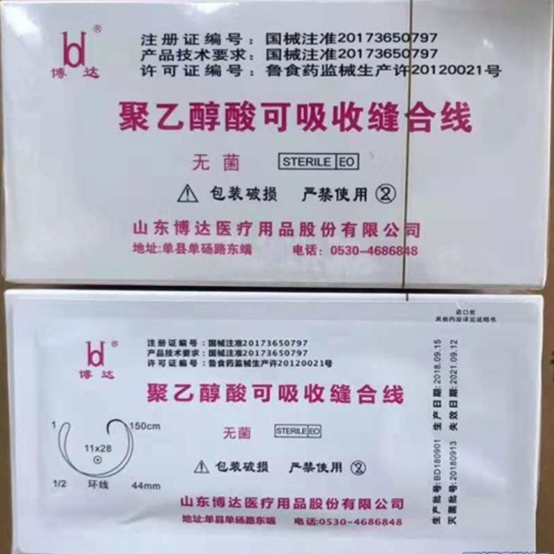 聚乙醇酸可吸收縫合線,產品具有水解吸收,組織反應低,打結方便牢固的特點;線體質軟拉力強勁,良好的組織相容性,縫合針采用進口馬尼針組織穿透力好,針線鏈接處沒有毛刺扁平的現象,為組織縫合減少損傷為患者提供安全保證。