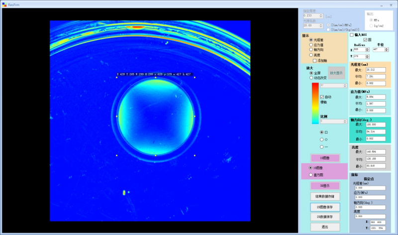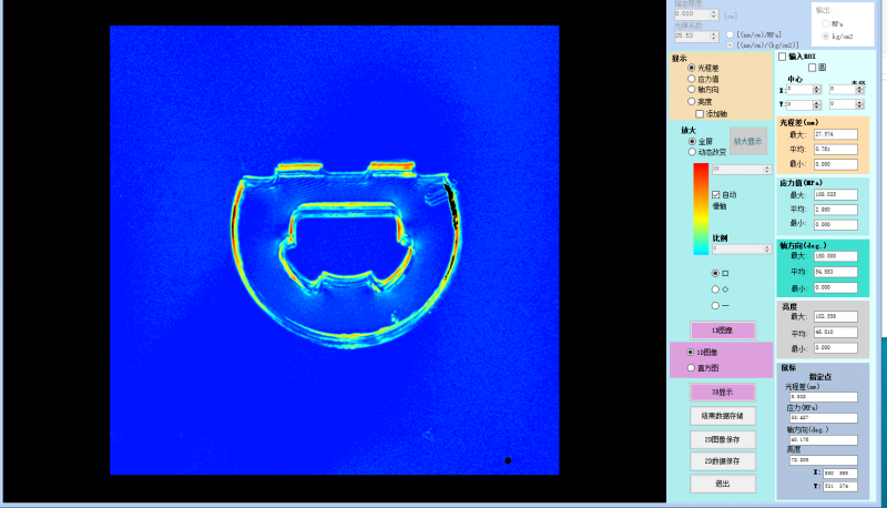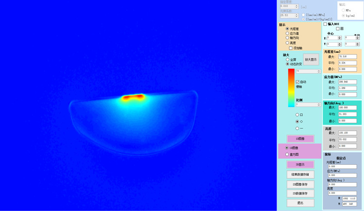5.隨著鼠標移動,樣品上各處的應力光程差實時顯示;